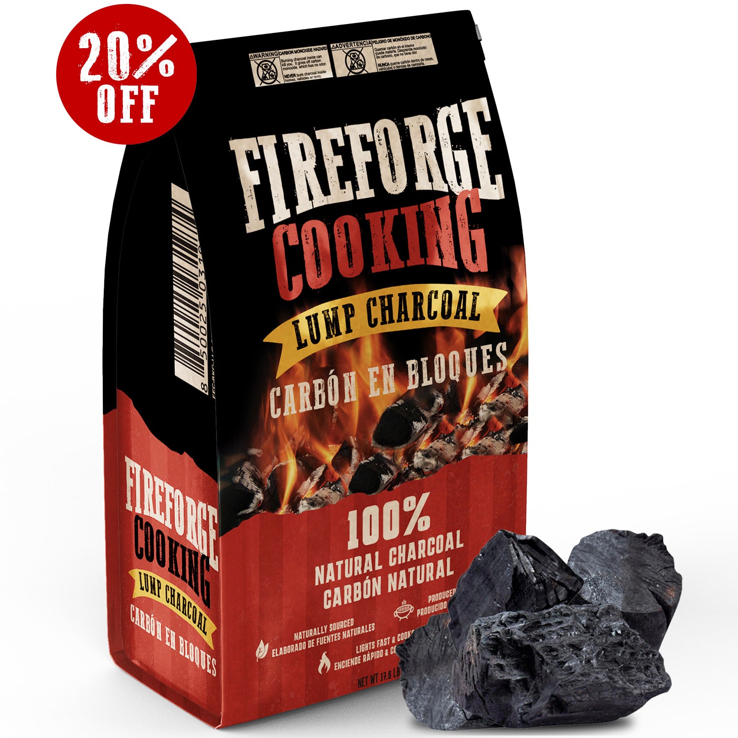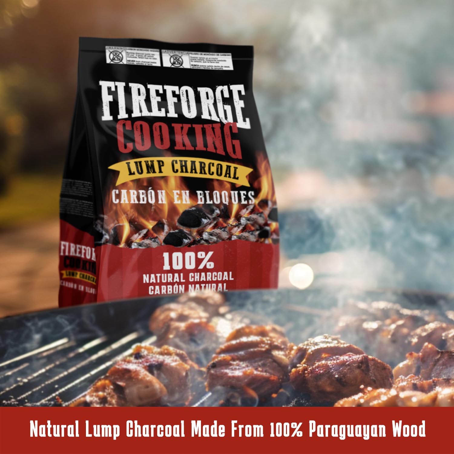 FireForge Cooking Lump Charcoal is made from premium Paraguayan wood, delivers a long burn time and high heat, burning almost entirely, leaving your grilled food with a vibrant aroma and irresistible flavor.